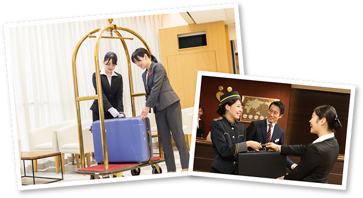ホテリエの第一歩はホテルを知ることから。テーブルマナーを通じて、プロのホテリエによるサービスを体験し、プロのホテリエの指導のもとでホテル業務を実践的に学びます。